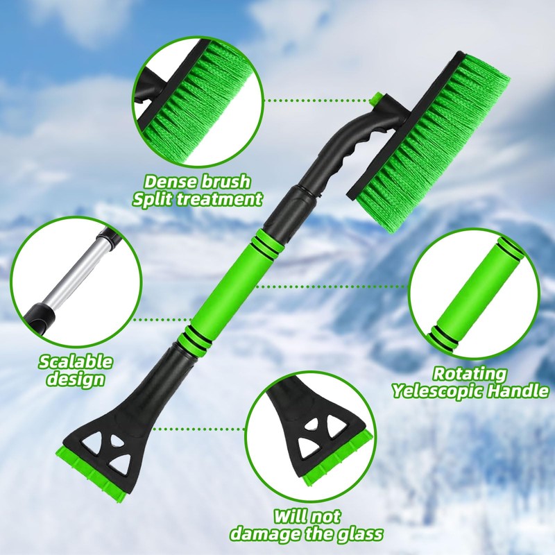• Easy to use: the snow brush car for 360° rotating head is easy to use. First remove the large pieces of snow with the ice scraper and then sweep away the remaining frost or snow with the snow brush.