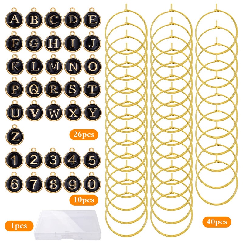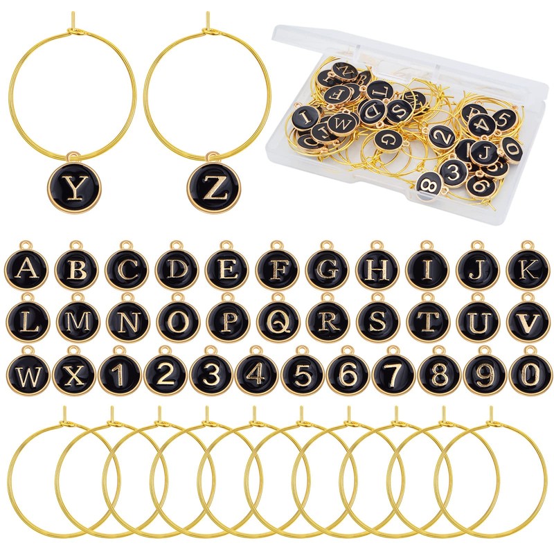 - RICH QUANTITY: You will receive 40pcs golden wine glass marker rings, 26pcs round black enamel letter a-z charms and 10pcs number 0-9 charms, well packaged in a box, enough for your daily uses and replacements.