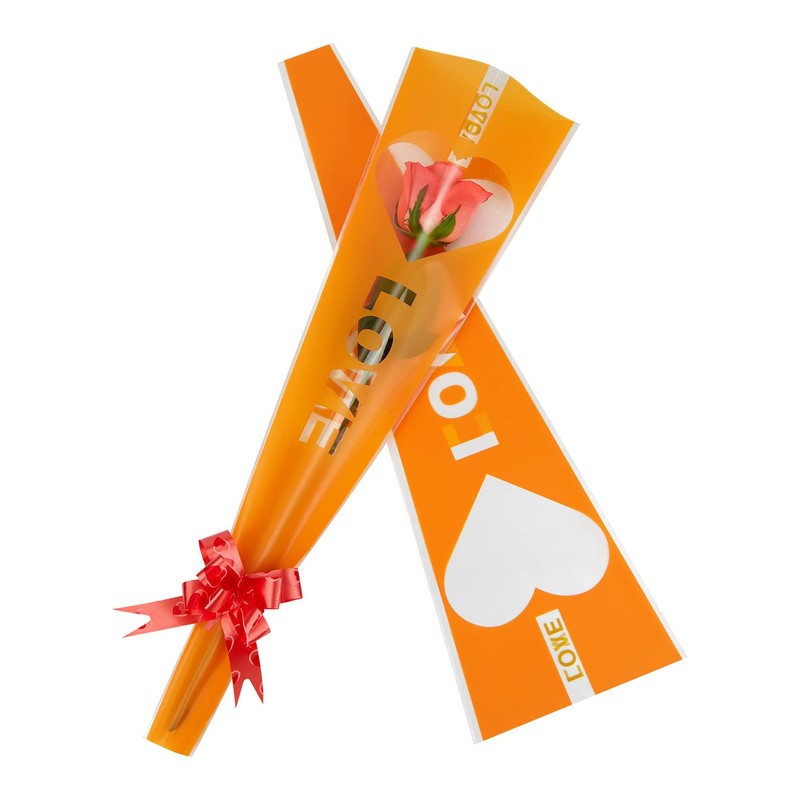 Aylmrice Flower Bags For Bouquets Single Flower Sleeve Cellophane Wrap Single Rose Packaging Bag Flower Wrapping Paper Bouquet D6-S-Orange-100pcs