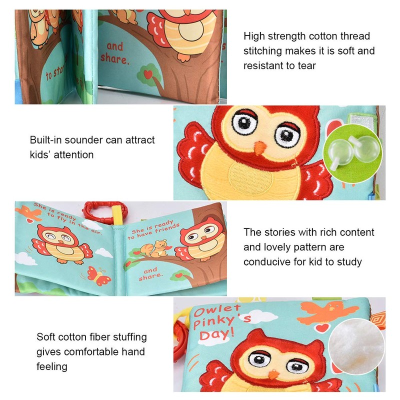 AYNEFY Infant Cloth Book, Reusable Cloth Book Polyester for 6 Months and Elder (Black Owl)
