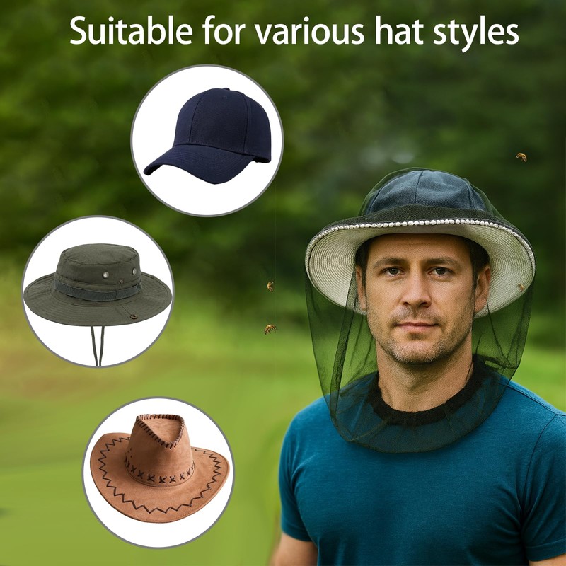 • Sunscreen Auxiliary: In addition to anti-mosquito, the hat net shelter design, can assist in blocking part of the direct sunlight, combined with the hat itself shading effect, to a certain extent, to reduce the ultraviolet radiation on the head, face damage, sunscreen and insect prevention in one fell swoop.