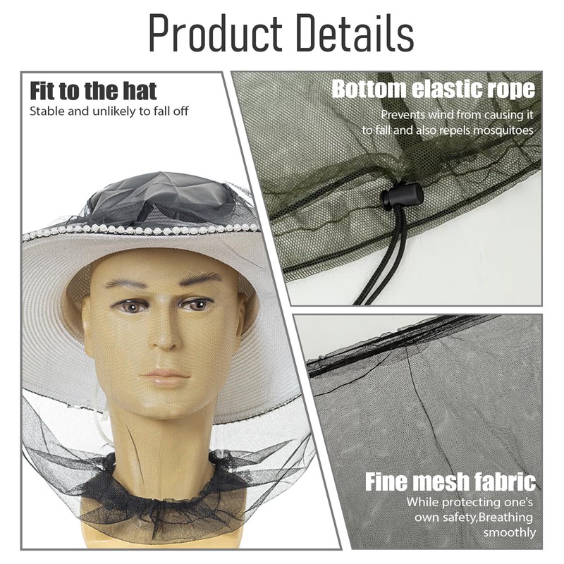 Specifications You will receive 2 pcs of anti-bug hat nets with excellent anti-bug function, which can effectively block mosquitoes, moths and other small insects, creating a safe and distraction-free space for your head and face, and free from bites when you are outdoors . Suitable for climbing, camping, hiking, fishing, gardening, beekeeping and other outdoor scenes.