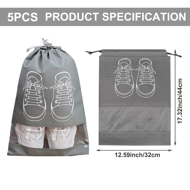 AYNKH 5 Pcs Large Shoe Storage Bags, Dustproof Drawstring Shoes Bags with Transparent Slot, Portable Waterproof Packing Organizers for Daily and Travel Use