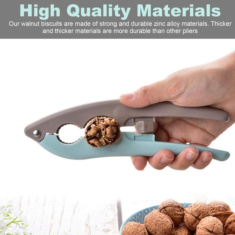 - Premium Material: Our nutcracker is made of strong and durable zinc alloy material. The outer layer is PP plastic, which is lighter than other nutcrackers, and has a better feel and is not easy to scratch. It has a beautiful appearance, a beautiful combination of green and gray, while ensuring the effectiveness of opening walnuts and nuts. The front end of the clip is fixed with flexible rivets, without jamming.