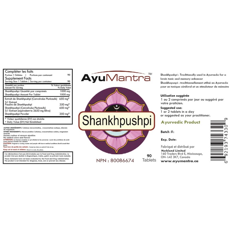 AyuMantra Organic Shankhpushpi Tablets - 1000mg, 90 Tablets | Supports Healthy Nervous System & Cognitive Function | USDA Organic, Non-GMO, Vegan, Gluten-Free
