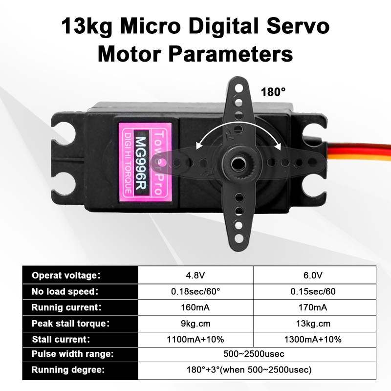 - 【Hohe Drehmomentleistung】Der 996-r Servomotor bietet ein Drehmoment von bis zu 13 kg/cm und eignet sich für Roboter und Modellprojekte, die einen hohen Drehmomentantrieb erfordern, um Präzision und Stabilität bei langem Betrieb zu gewährleisten.