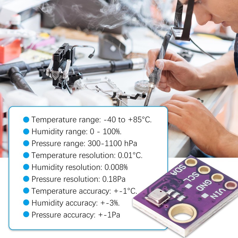 - 【Wide working range】Including temperature -40°C to +85°C, humidity range 0-100% and air pressure 300-1100hPa.