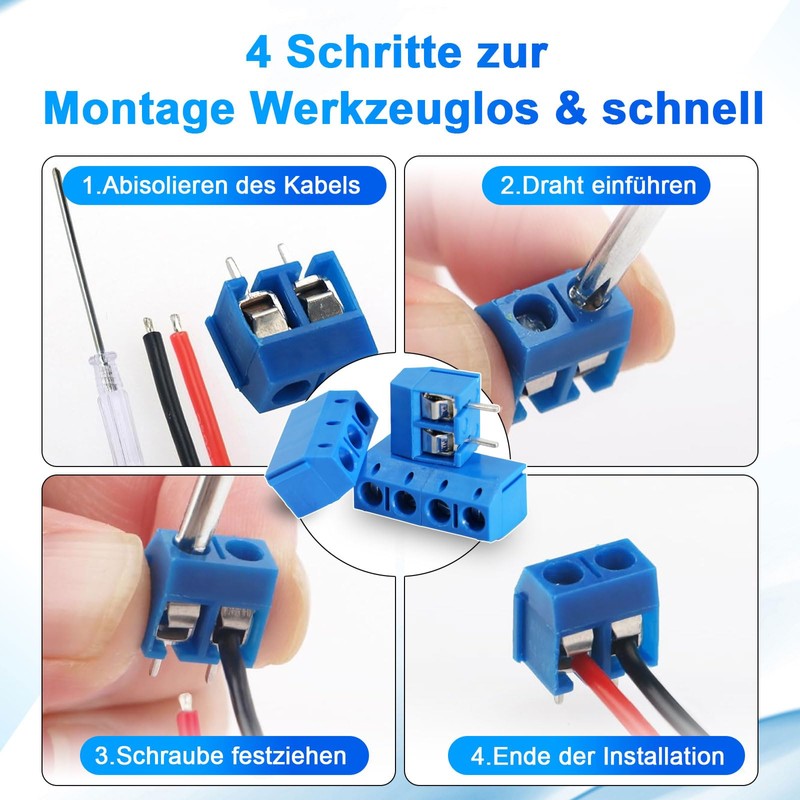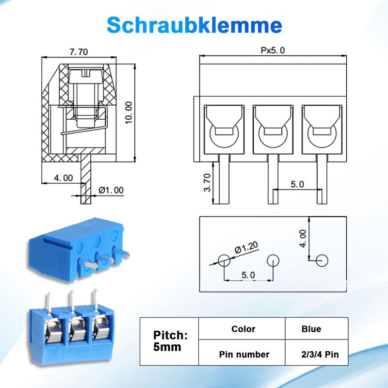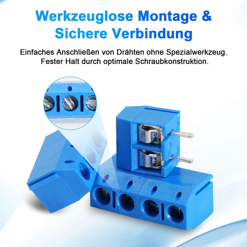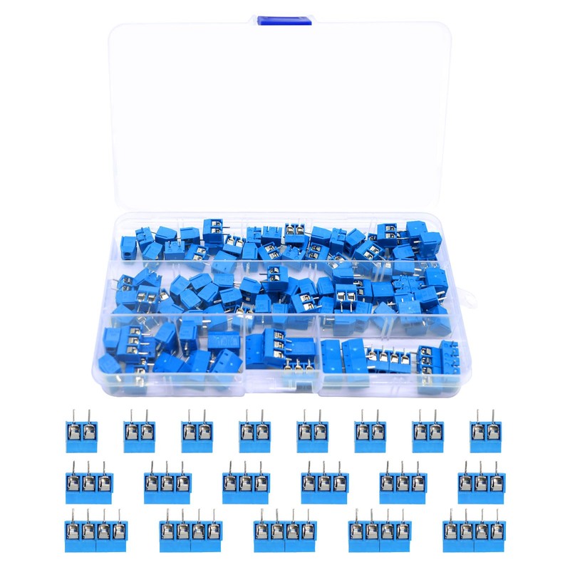 - Extensive terminal set: 100 pieces high-quality PCB screw terminals in blue (80 x 2-pin, 15 x 3-pin, 5 x 4-pin) with 5 mm pitch - ideal connectors for electronics projects