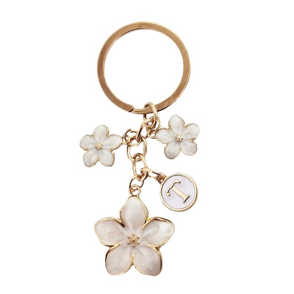 AYYSHULAN Pink/White/Black Cute Enamel Flower Initial Letter Bag Charms Keychain Aesthetic Accessory Keyring Purse Backpacks, White-t, free size