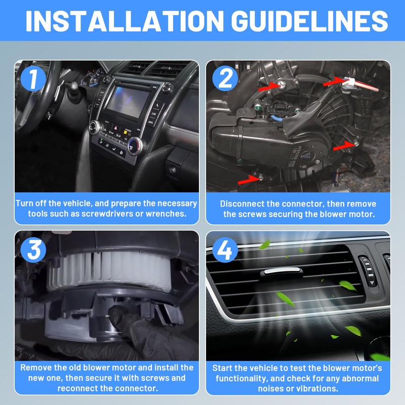 - [Enhanced Performance & Efficiency]: Experience superior airflow with this energy-efficient blower motor. The upgraded fan design prevents dust buildup and delivers a larger air volume, quickly restoring fresh air inside your car. Rigorous mechanical and electrical testing ensures smooth, balanced, and long-lasting performance.