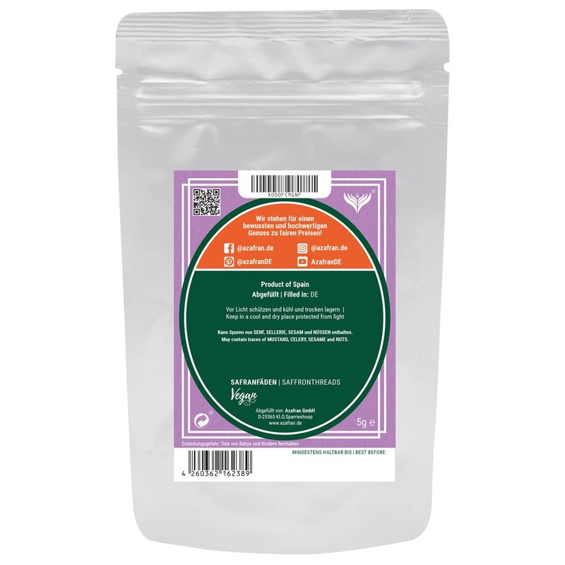 - "Azafran" saffron is characterised by a special deep red colour, a unique aroma and long threads, which gives it a visually more beautiful appearance compared to the similar quality "Sargol".