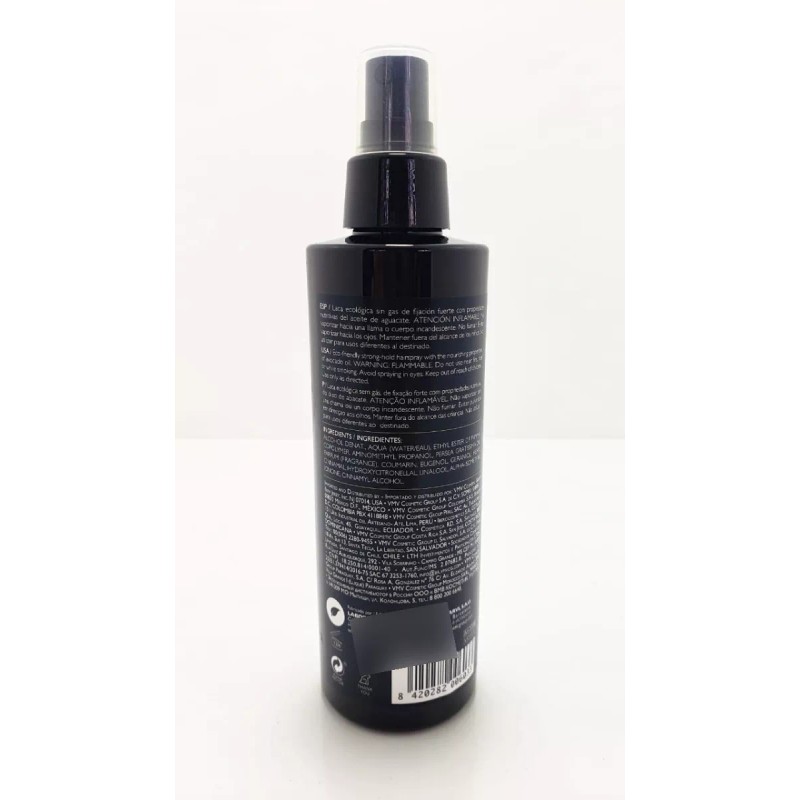 Laca sin gas de fijación fuerte. Su fórmula con aguacate proporciona un acabado más liso, menos encrespado y con más brillo. Fijación fuerte para peinados de larga duración. Sin parabenos ni sulfatos.