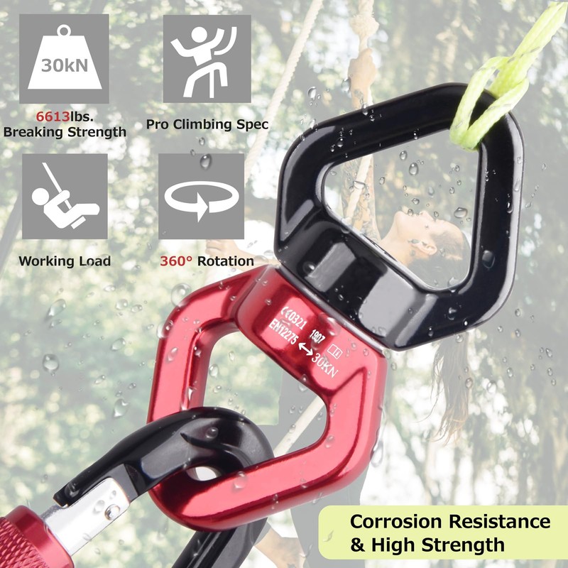 - 🍉 FITS FOR VARIOUS HANGING & RIGGING: This swing spinner is designed for various rigging, hanging, and also ideal for climbing accessories. It is widely used in rescue, rock climbing, swing setting, hammocks, aerial yoga, children's swing spinner hanger and so on