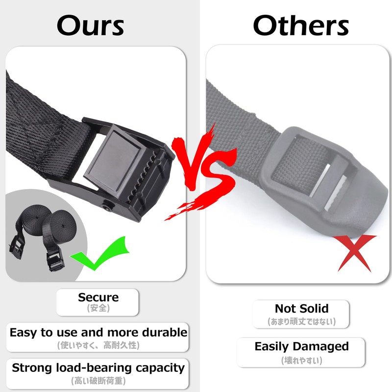 - Great Value Set: Includes a set of 2 or 4 cam buckle straps. The buckle straps are perfect for trucks, cargo, motorcycles, trailers, and suitcases, preventing items from falling or getting lost. With strong weight capacity, they can be used with confidence
