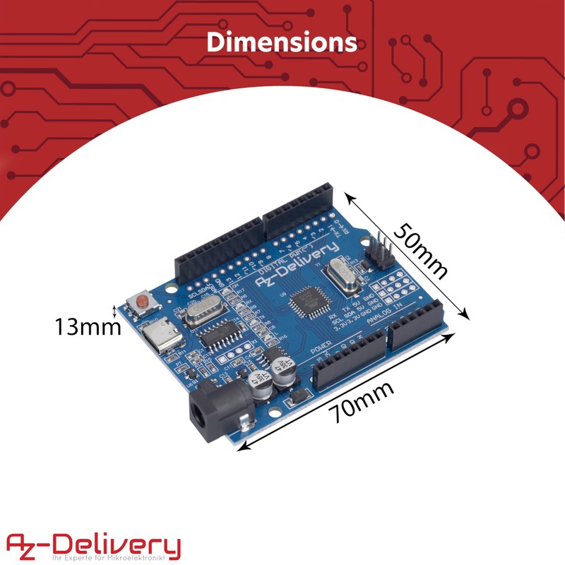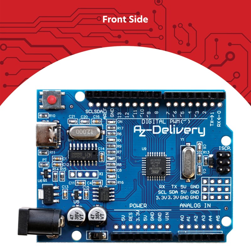 - Get the new AZDelivery microcontroller board with AZ-ATmega328 board, CH340 chip and USB-C connection now