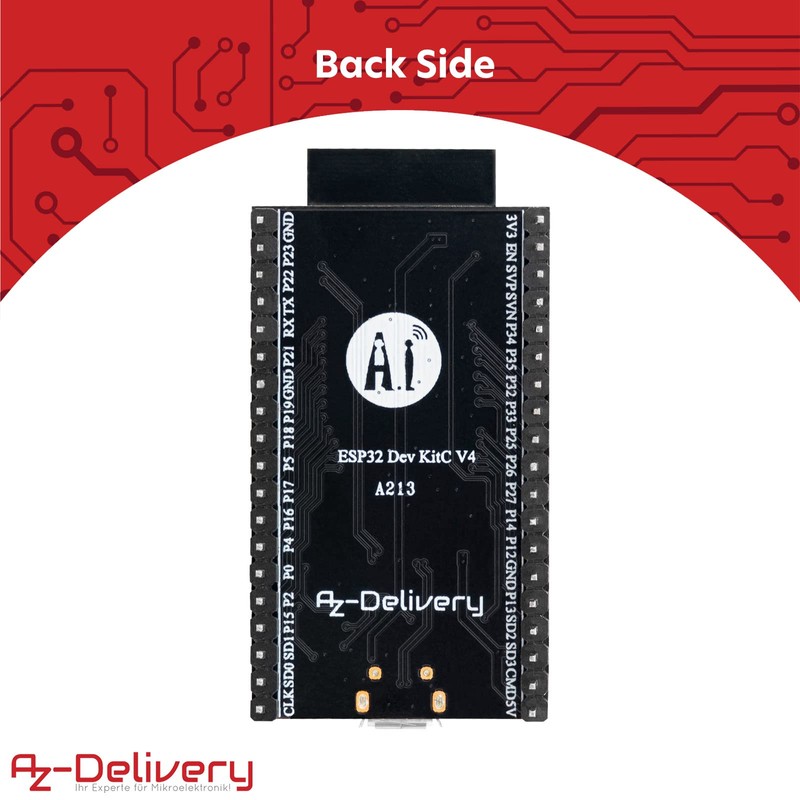 AZDelivery ESP32S Dev Kit C V4 NodeMCU WLAN WiFi Development Board Compatible with Arduino Including E-Book! (Successor Module of ESP32S Dev Kit C V2)