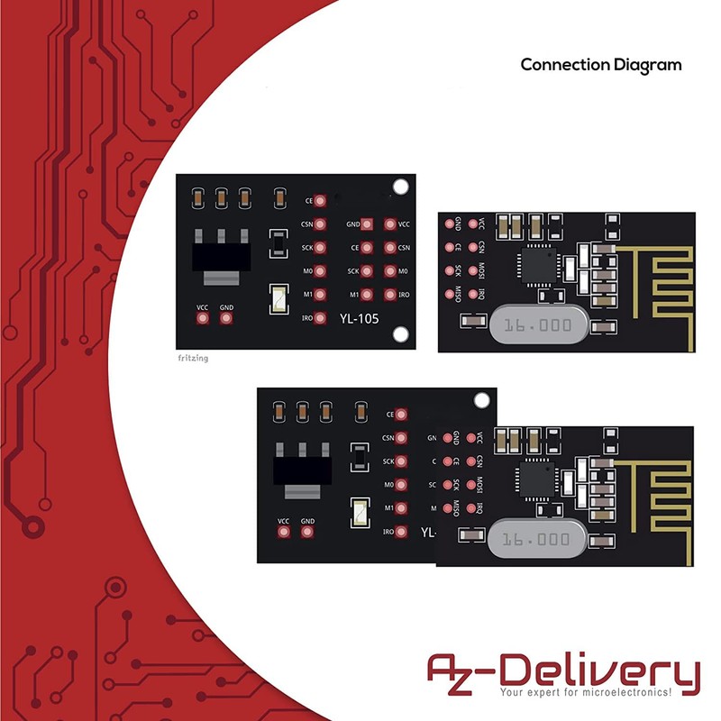 - Get three compatible with NRF24L01 wireless RF transceiver module 2.4 GHz with 8 pins