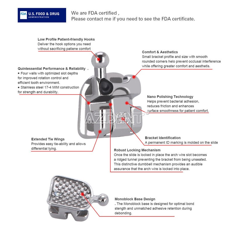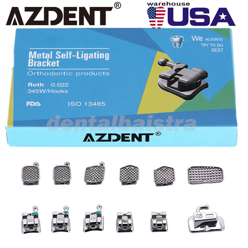 AZDENT Dental Orthodontic Self-Ligating Brackets Braces Roth 022 Hooks 345&Buccal Tubes