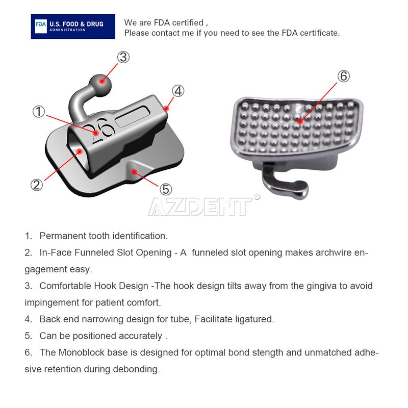 - Package: One box of 20 Brackets, 4 Buccal Tube