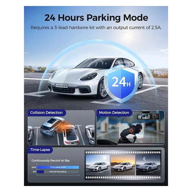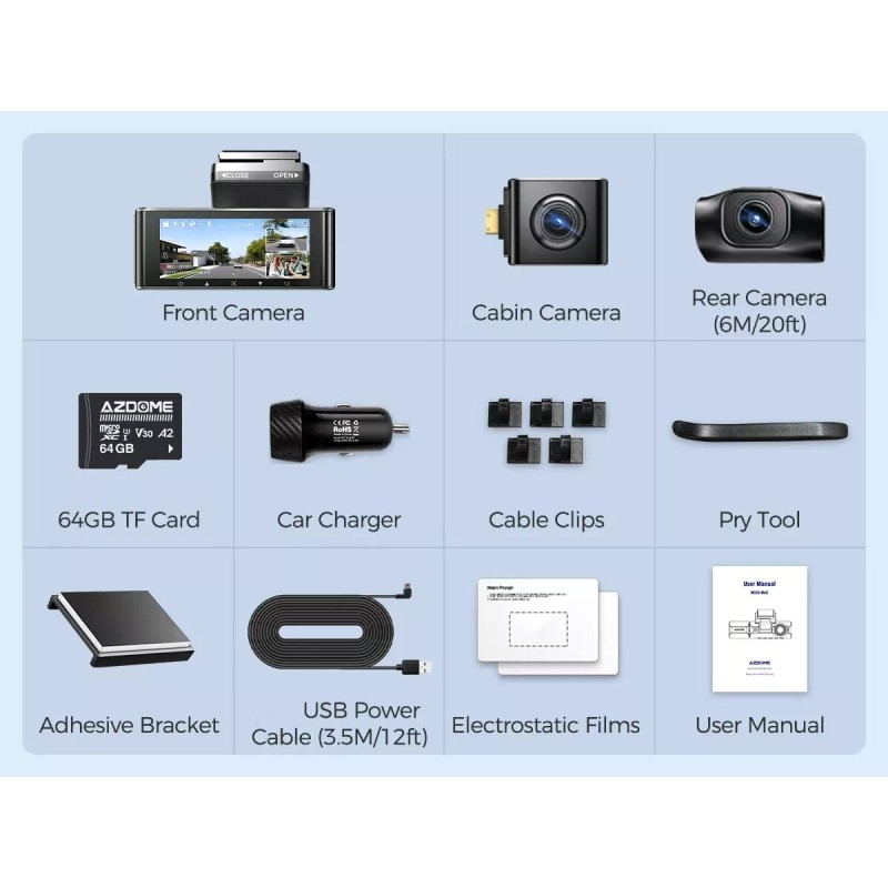 Every AZDOME M550 Max dashcam comes with an original AZDOME 64GB SD card in the packaging as gift. Class 10 Speed SD Card is required. Max Support: 128GB. Be sure to format your SD card with your dash cam for the first time use.