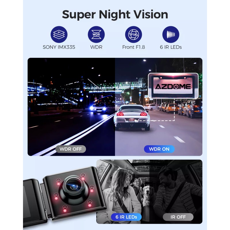 AZDOME M550 Max Dash Cam 3 Channel WiFi GPS 4K+1080P+2.5K Parking Mode 64GB Card