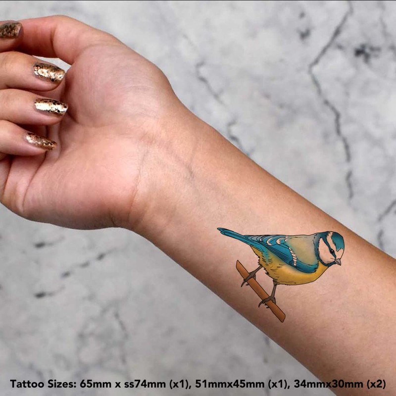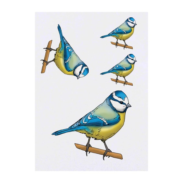 Azeeda 4 x 'Blaumeise' Temporäre Tattoos - Wasserfest, Hautfreundlich & Ungiftig · Transfers in Verschiedenen Größen (TO00059786)