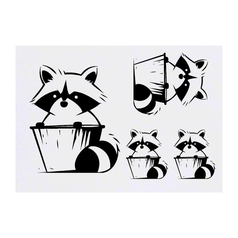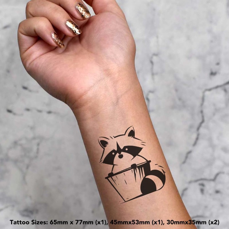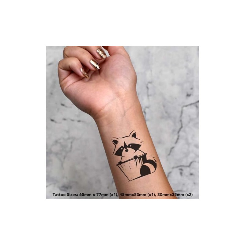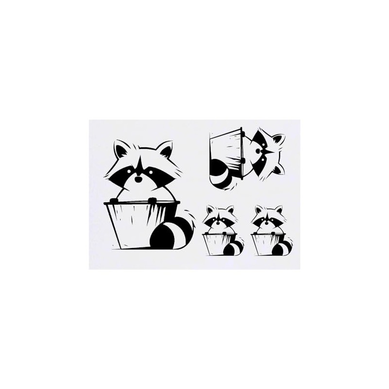 Azeeda 4 x 'Eimer Waschbär' Temporäre Tattoos - Wasserfest, Hautfreundlich & Ungiftig · Transfers in Verschiedenen Größen (TO00072126)