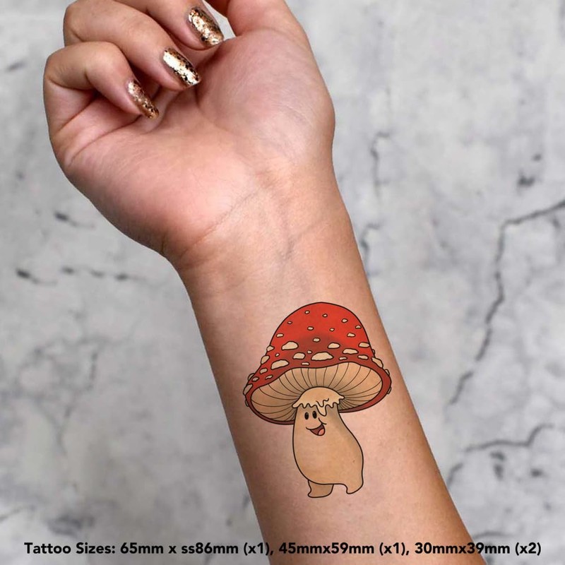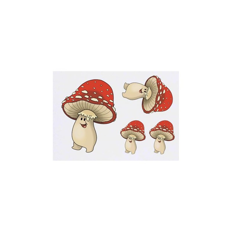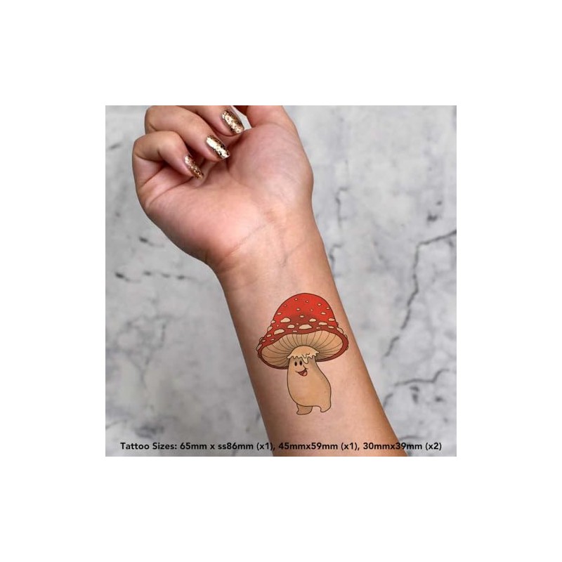 Azeeda 4 x 'Fliegenpilz-Charakter' Temporäre Tattoos - Wasserfest, Hautfreundlich & Ungiftig · Transfers in Verschiedenen Größen (TO00075406)