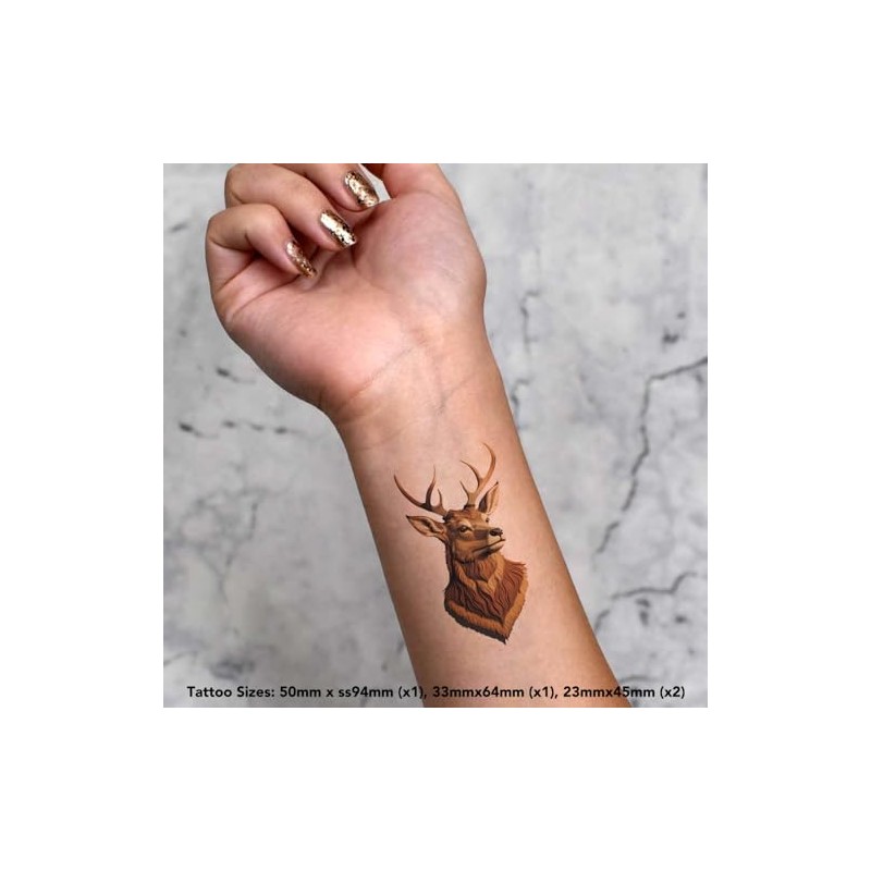 Azeeda 4 x 'Hirschkopf' Temporäre Tattoos - Wasserfest, Hautfreundlich & Ungiftig · Transfers in Verschiedenen Größen (TO00068406)