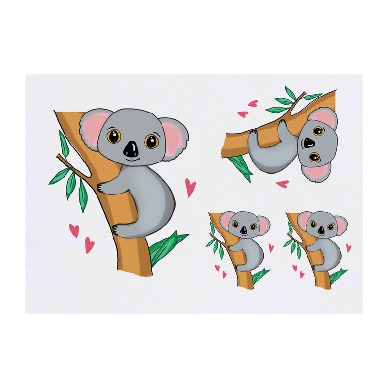 Azeeda 4 x 'Netter Koala' Temporäre Tattoos - Wasserfest, Hautfreundlich & Ungiftig · Transfers in Verschiedenen Größen (TO00084770)
