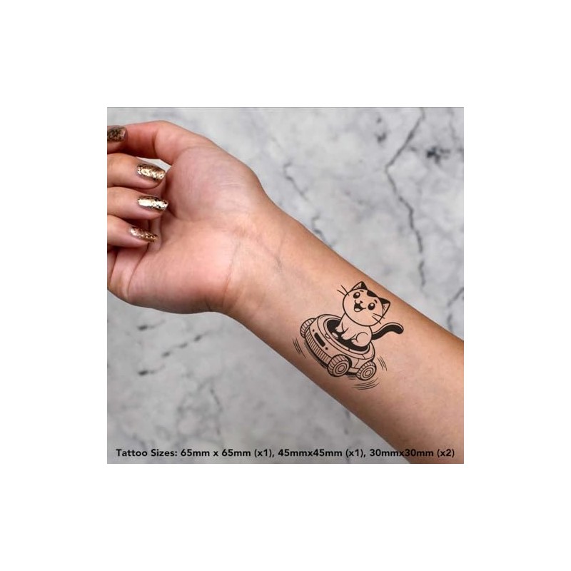 Azeeda 4 x 'Roboterstaubsauger Katze' Temporäre Tattoos - Wasserfest, Hautfreundlich & Ungiftig · Transfers in Verschiedenen Größen (TO00083338)