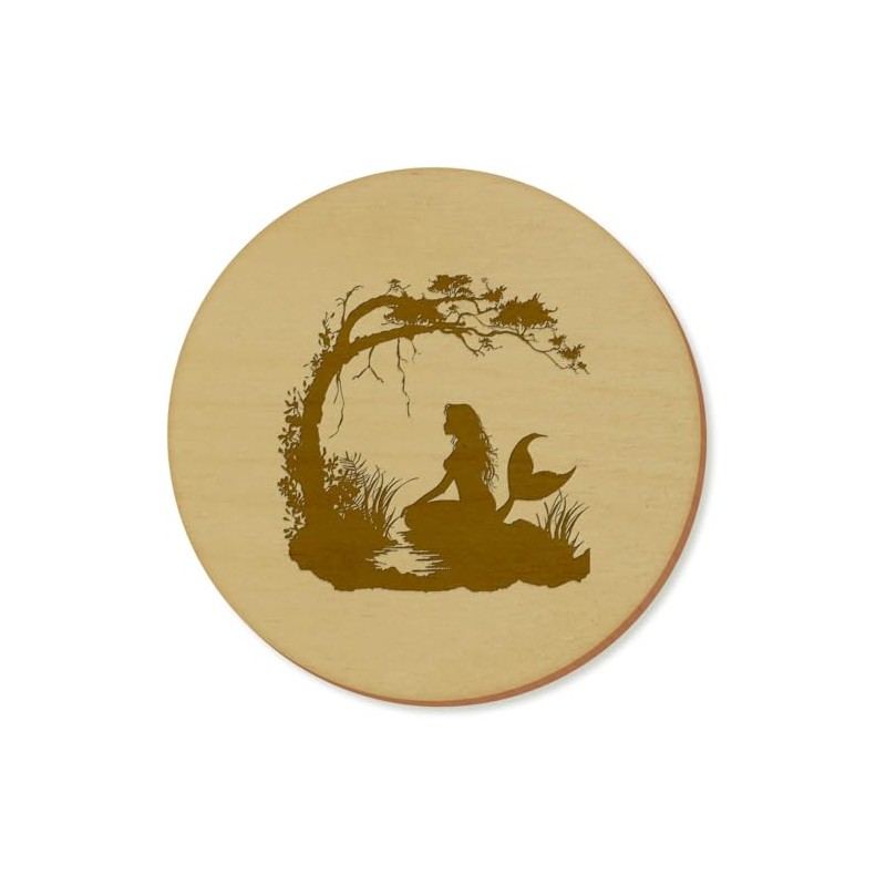 Azeeda 6 x 'Mermaid Silhouette with Tree' 95mm Round Wooden Coasters (CR00215794)