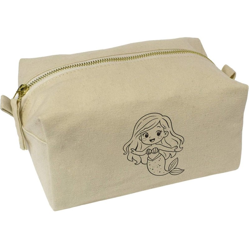 Azeeda 'Cute Mermaid' Canvas Wash Bag/Makeup Case (CS00047150)