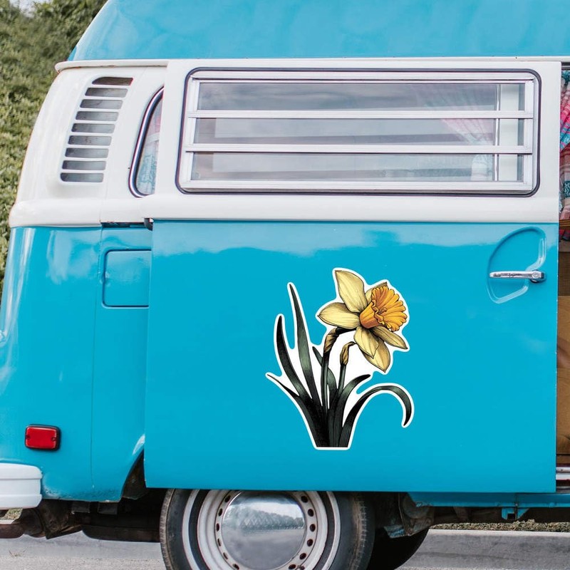Azeeda 'Daffodil Flower' White Premium Vinyl Decal Sticker – Waterproof, Durable & Easy to Apply - Ideal for Car Bumpers, Windows, Bins and More (DW00123207)