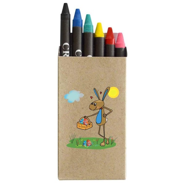 - A set of 6 vibrant colouring crayons with a handy storage box