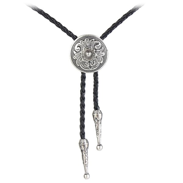 - SUPERIOR QUALITY:The flower Bolo Tie is made of ancient silver plated alloy, nikle free, no cadmium, lead, and the black string is made of high quality genuine leather, fit for men or women, a special apparel accessory in your wardable
