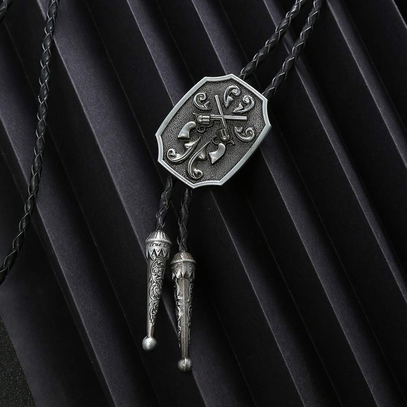- Superior Quality: This vintage cowboy bolo tie is crafted from ancient silver-plated alloy, free from nickel, cadmium, and lead, ensuring a safe and durable accessory for all. The leather cord is made of high-quality genuine leather, providing a smooth and comfortable feel. Suitable for both men and women, this bolo tie makes a unique addition to any wardrobe