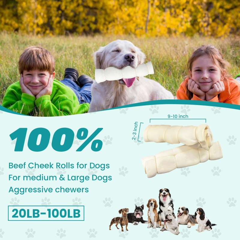 • Beef Cheek Rolls for Dogs - Our dog treats and chews are as all natural dog bones, pair it with extra beef, peanut butter, or chicken flavor will make dogs excited. Beef cheek chews are great for dogs at any life stage—puppies, adults, senior dogs will enjoy them and absolutely love!