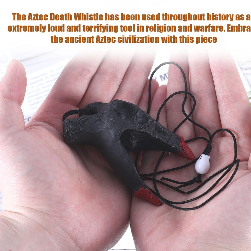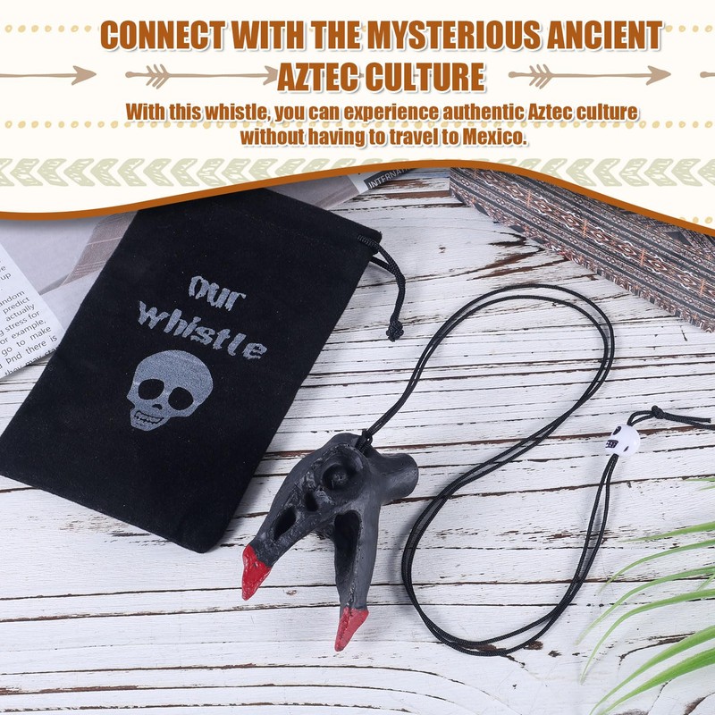 - Cultural Significance: The Aztec death whistle has historically been used in religious rituals, sacrificial ceremonies, and warfare. Our whistle is designed with black eerie crow skull, which represents death, mystery, and power, and warfare, connecting with the enigmatic Aztec culture.