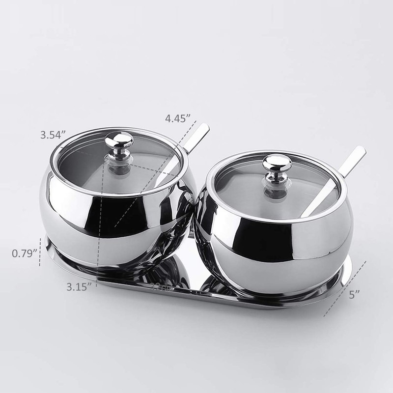 - Azucarero de acero inoxidable 304, duradero, resistente y resistente a la corrosión, apto para la mayoría de líquidos o polvo, como ácidos y bases excepto ácido hidrofluorico.
