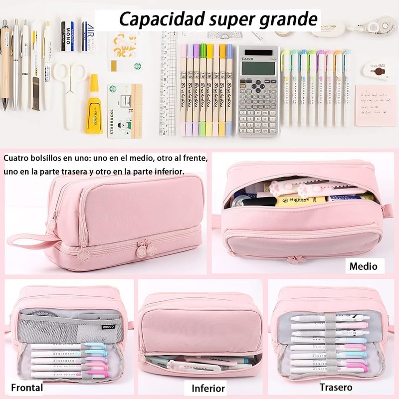 - 4 compartimentos: este estuche para lápices tiene 13 ranuras en ambos lados, que pueden ayudar a organizar bolígrafos, marcadores de lápiz o resaltadores fácilmente. Se pueden usar 2 bolsillos de malla para colocar gomas de borrar, tarjetas de visita y auriculares o artículos pequeños que tienden a perderse. Y los 2 compartimentos grandes en el medio pueden acomodar su aprendizaje y sus necesidades diarias.