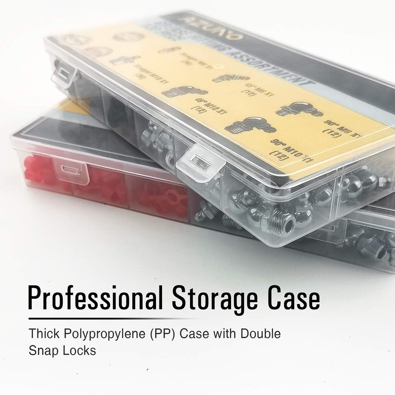 - 【Keep Organized with Durable Case】 Thick polypropylene (PP) case with double snap locks to keep secure of grease zerk assortment.