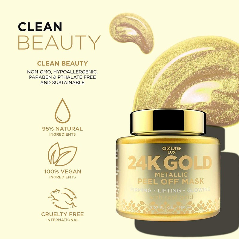 AZURE 24K Gold Metallic Firming Peel Off Face Mask - Removes Blackheads/Dir