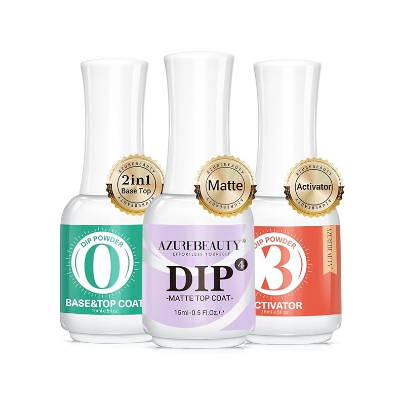AZUREBEAUTY 3 Pcs Dip Powder Liquid Set, Base Top Coat with Activator Matte Coat Comprehensive Professional Dipping Powder Essential Set for Dip Nail Art, 15 ml 0.5 Oz Fast Dry No Nail Lamp Needed