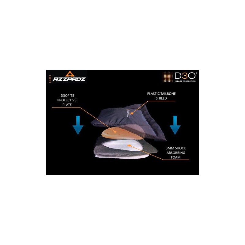 • Tailbone protection with flexible plastic shell.