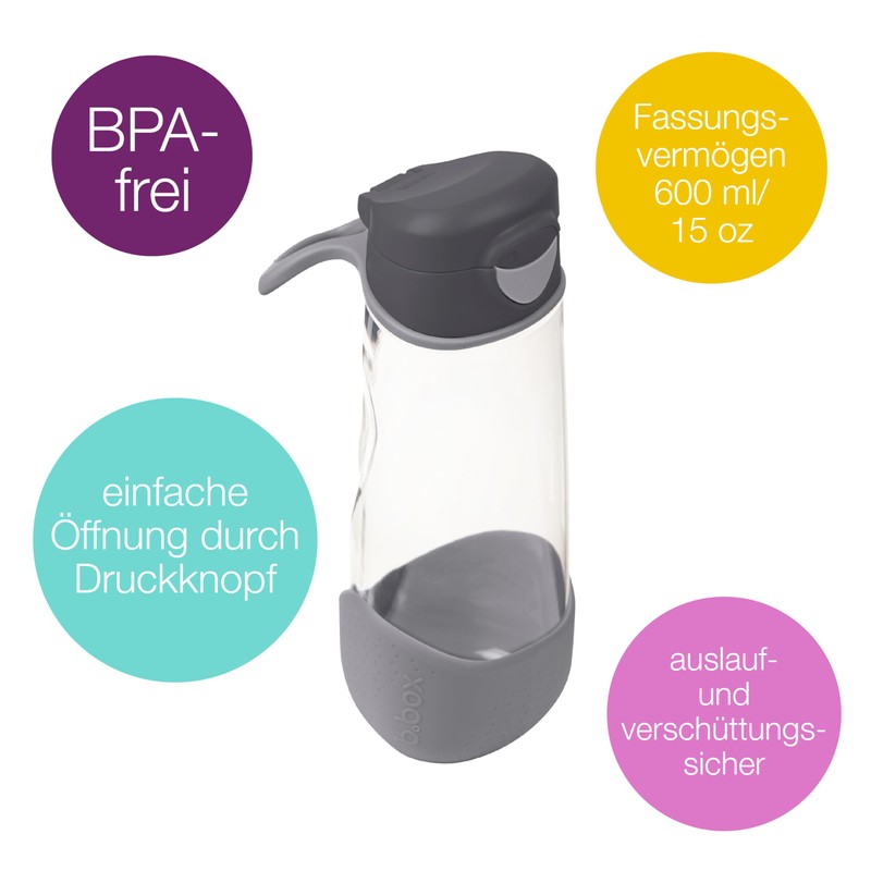 b.box Sports Water Bottle, Grippy, Leak-Proof Water and Water Bottle for Children, Cool, Modern Design, Tilt and Drink, 600 ml (20 oz)