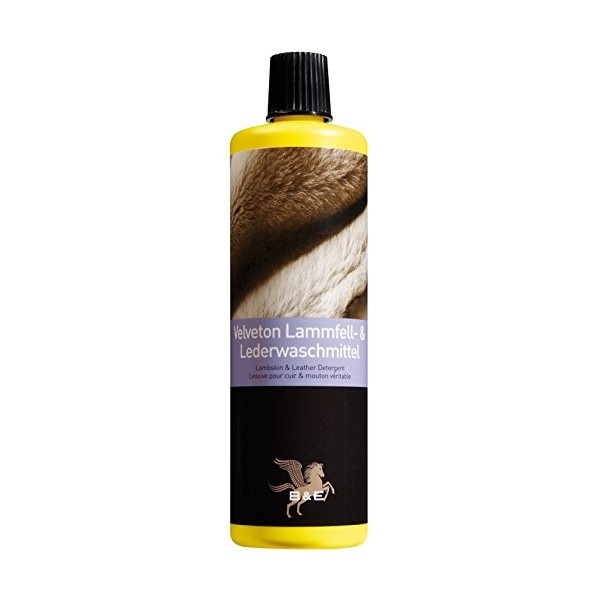 Mild detergent with moisturising effect. Concentrate for washing lambskin products, clothing with leather trim, wash leather, motorcycle clothing and gloves. Cleans thoroughly and makes the leather soft and supple. Thanks to special vegetable components, a moisturising effect is achieved - this prevents the leather from drying out and hardening. Suitable for both hand and machine washing. Furthermore, Velveton is ideal for washing lambskin products. Biodegradable according to the OECD 302 B. Application: 1.5 measuring cups (cap) are sufficient for approx. 4.- kg dry wash. Machine washable at max. 30°C on a gentle cycle. Before drying, put the washed clothing into the correct shape by stretching and pulling. Volume: 250 ml, 500 ml.