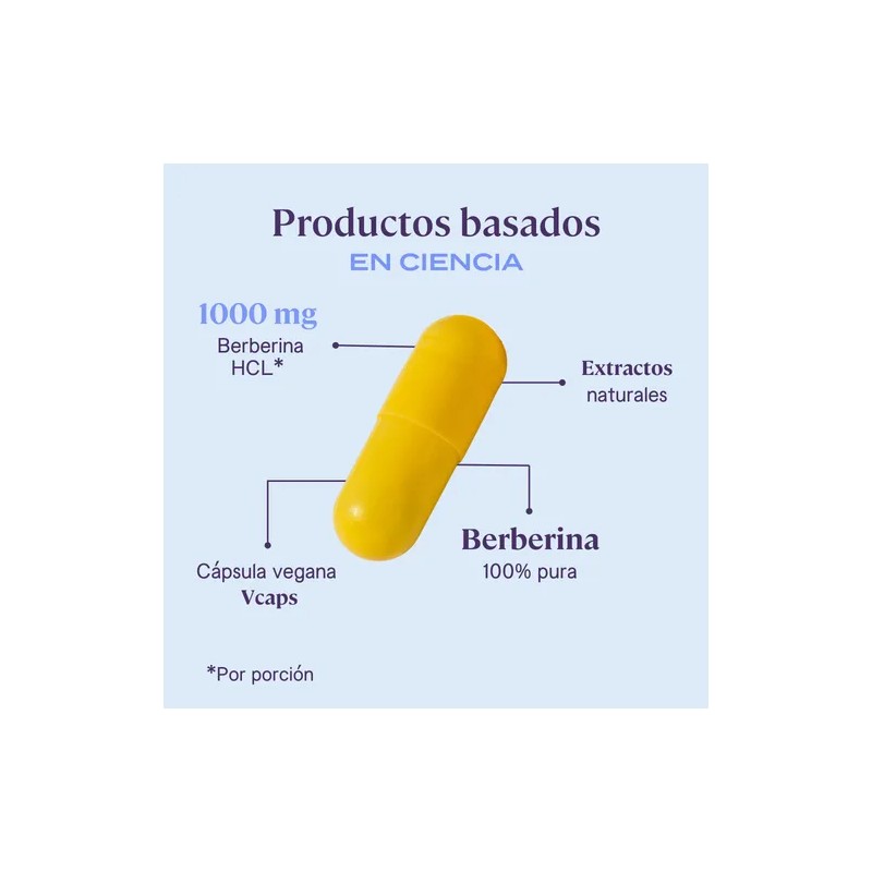 ✅ DOSIS TERAPÉUTICA - 1000mg de Berberina pura por porción (2 cápsulas)