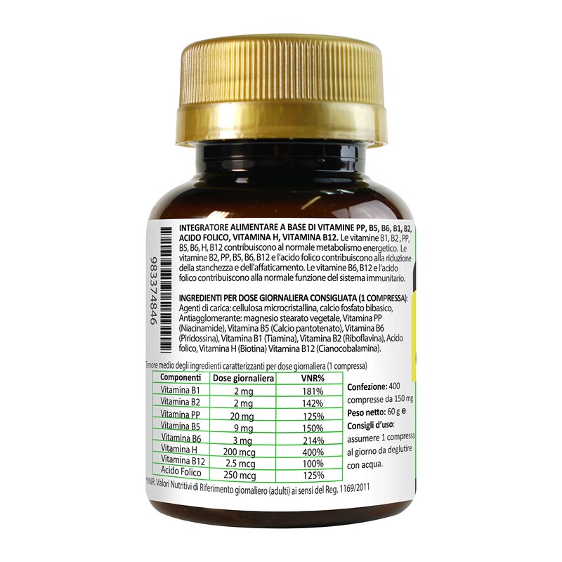 B-Komplex-Vitamine 400 Tabletten 1 pro Tag | Für Vegetarier geeignet | Müdigkeit und Erschöpfung | Energie | Haar, Haut, Schönheit