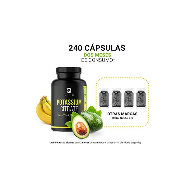 B Life Company - B Life Company Citrato de Potasio 800 mg de Potasio (Provenientes de 1000 mg). Ingredientes Naturales de 240 Cápsulas. Potassium Citrate. 🏆 Reconocido por su excelente relación calidad-precio. Construcción robusta y atención al detalle. 🏆 Recomendado por expertos. Ideal para quienes buscan lo mejor en calidad y estilo. Producto auténtico con satisfacción total asegurada. ¡No te quedes sin el tuyo y aprovecha esta oportunidad única!